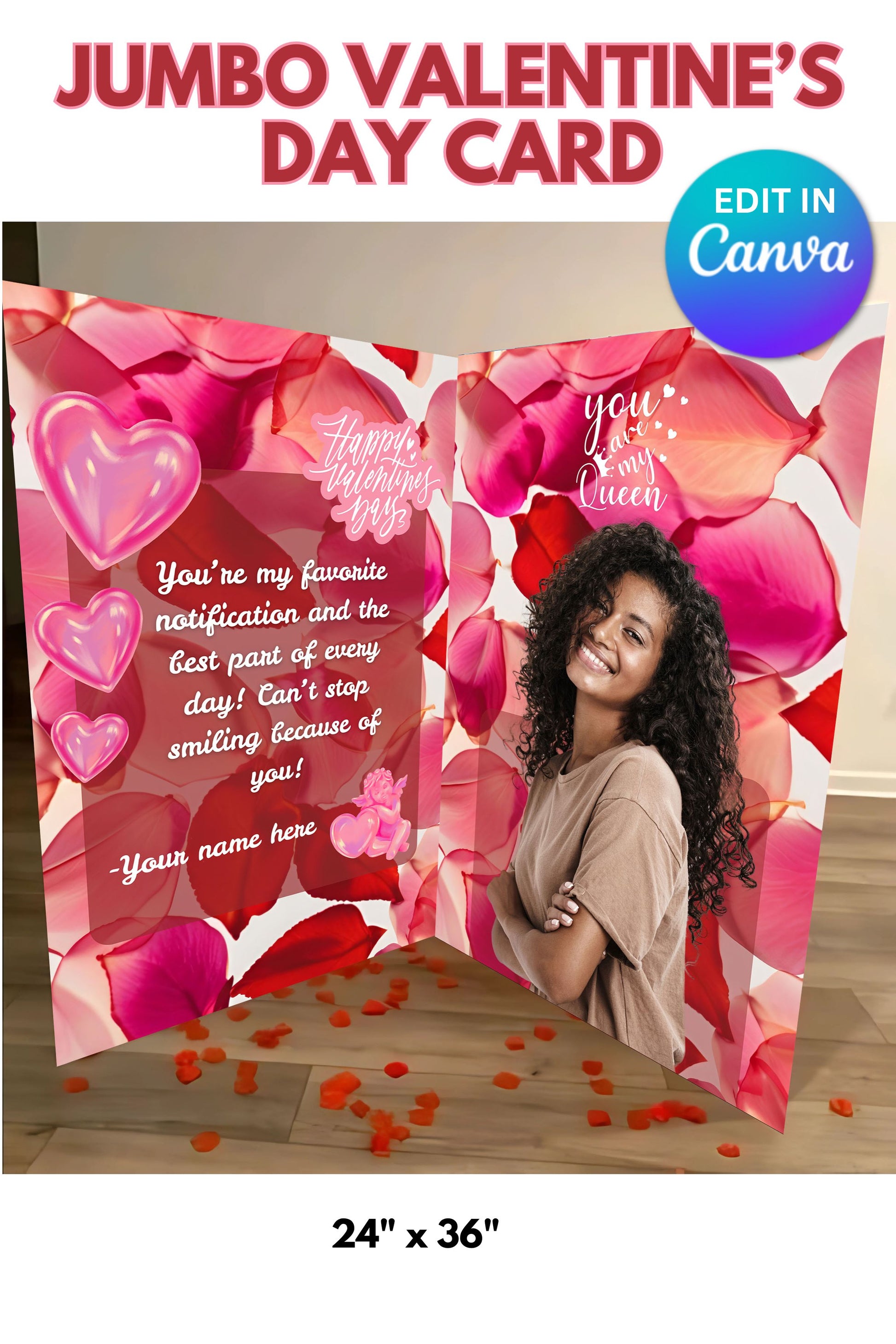 This giant Valentine card is perfect for showing your love! Measuring 24x 36n inches, it is made with premium quality Canva and is fully editable for a personalized touch. Share your feelings in a big way with this one-of-a-kind card.