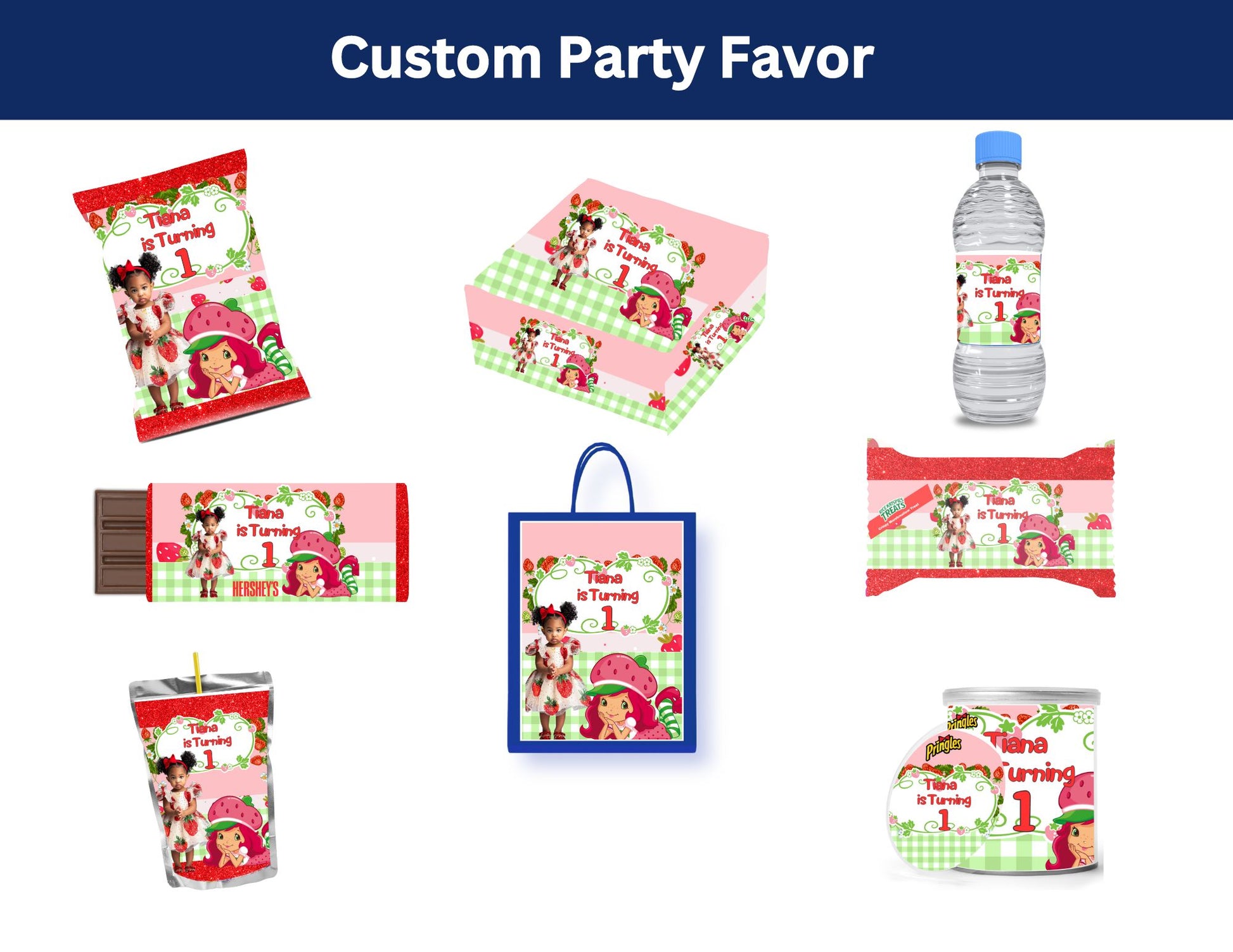 Create the perfect party with our Strawberry Shortcake Party Favor Bundle! This bundle includes editable and customizable items, making it easy for you to personalize your party and leave a lasting impression on your guests. Celebrate in style and make your party truly unique with our bundle.